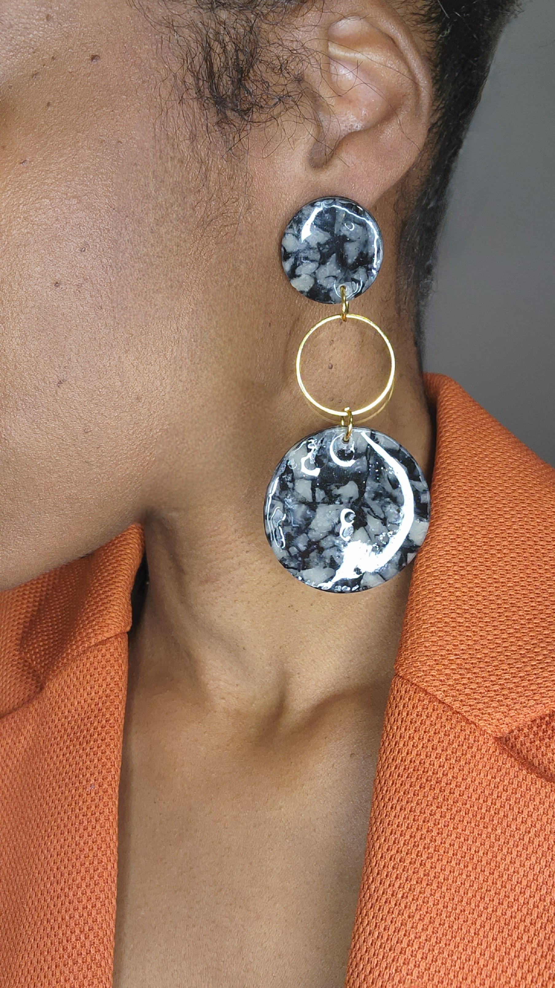 Each pair of earrings are handmade, light weight and has small blemishes which makes them unique. No 2 pair alike.