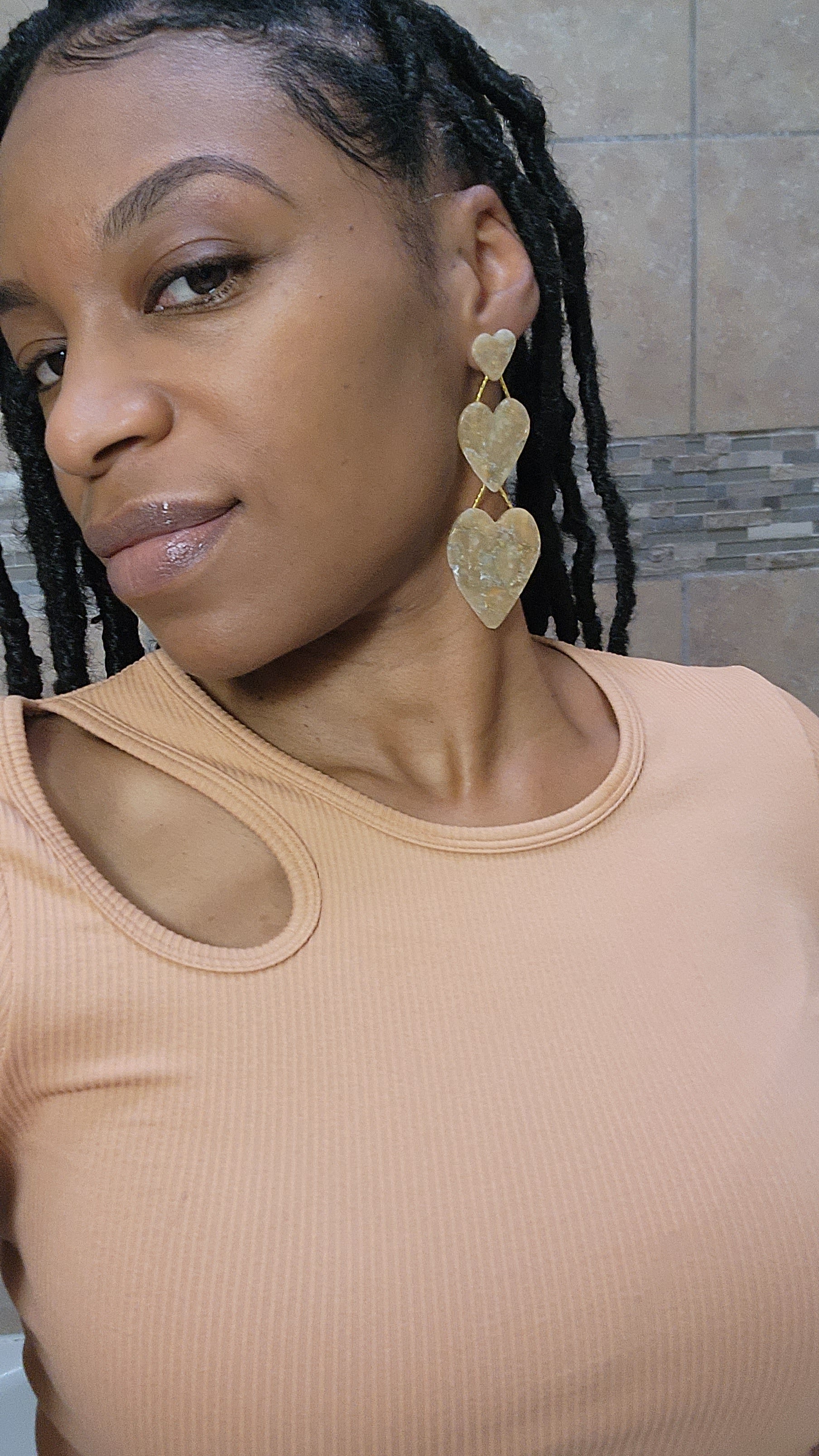 Each pair of earrings are handmade, light weight and has small blemishes which makes them unique. No 2 pair are alike.