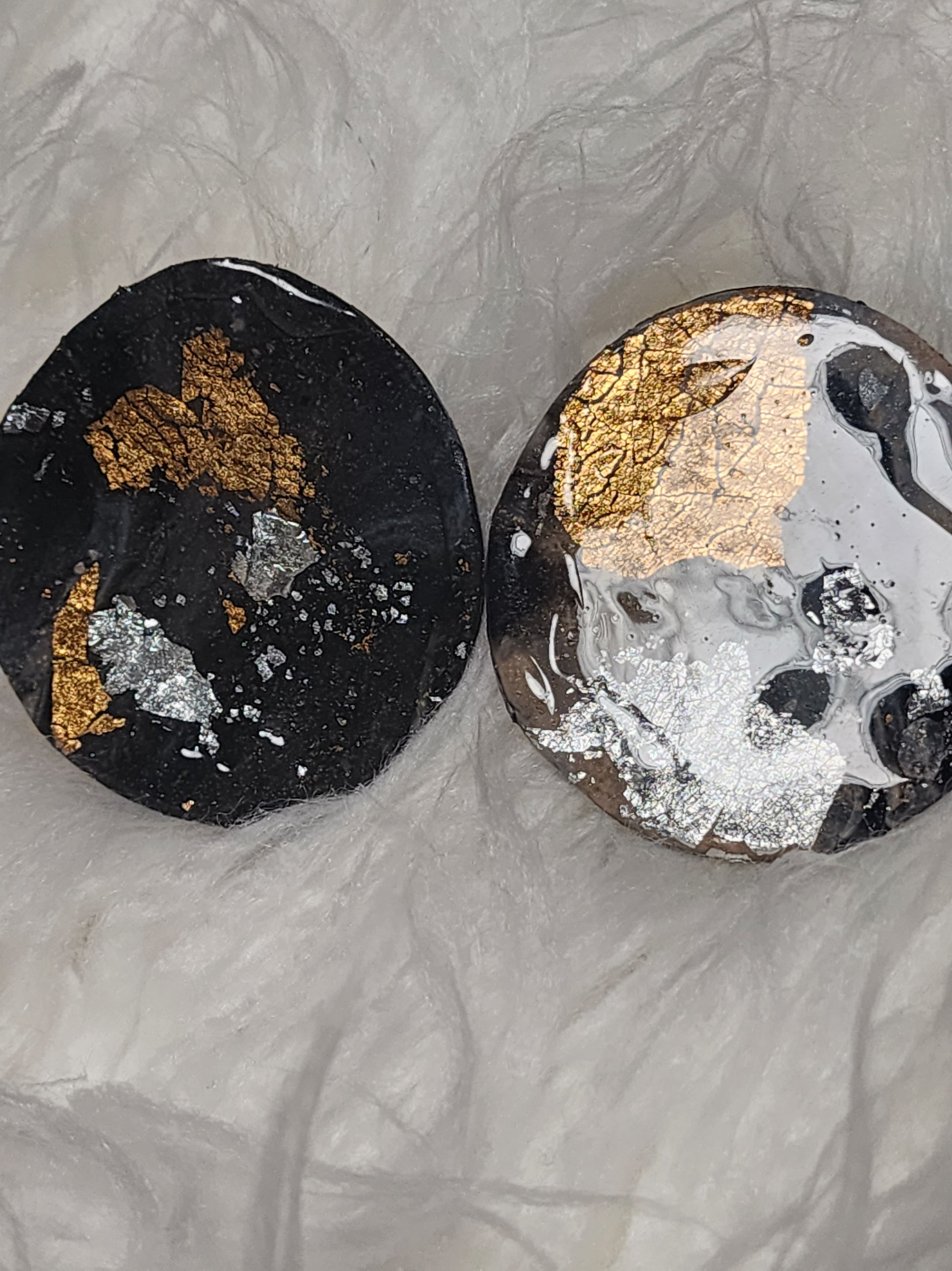 Materials: Polymer clay, UV resin, hypoallergenic steel